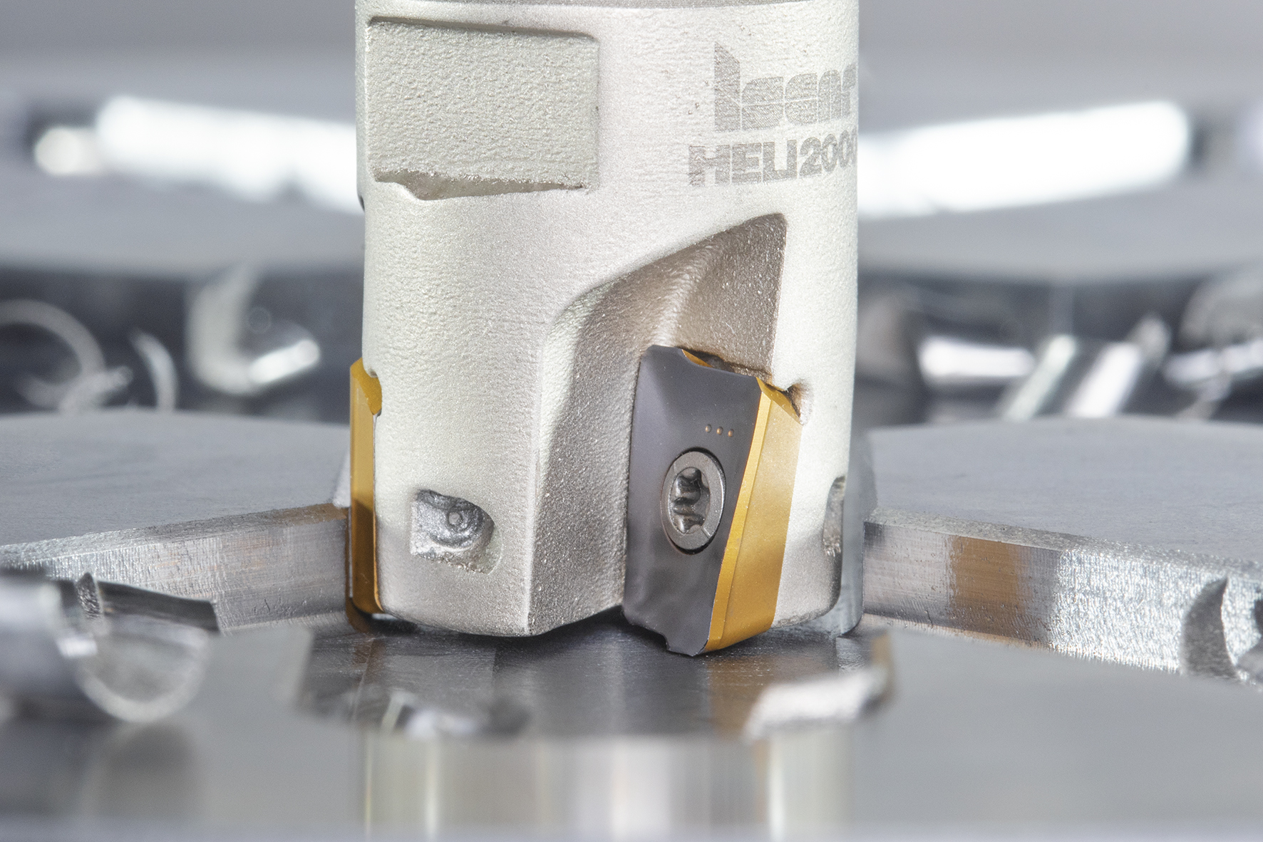 HELI2000 integra as famílias HELIMILL e HELIPLUS, combinando seus últimos desenvolvimentos em um único portfólio. Isso inclui a introdução de dois novos graus de carboneto altamente eficientes: IC5600, projetado para usinagem de aço (grupo ISO P), e IC716, especificamente adaptado para corte de titânio. Além disso, a gama de pastilhas foi expandida com novas geometrias de corte. Isso inclui pastilhas com um formador de cavaco altamente positivo para fresamento de titânio, arestas de corte divisoras de cavaco para desbaste produtivo e outros designs. Além disso, a gama agora inclui pastilhas com arestas de corte reforçadas para fresamento de alta alimentação de materiais duros até dureza HRC 60 (grupo ISO H, Fig. 4). Esses novos produtos também fazem parte da família HELIALU da ISCAR, que consiste em ferramentas de fresamento com pastilhas em forma de paralelogramo para usinagem de ligas de alumínio (grupo ISO N). A expansão dessa família inclui cabeças de fresa indexáveis com adaptações roscadas para os sistemas MULTI-MASTER e FLEXFIT, fornecendo a opção de resfriamento de alta pressão (HPC). A configuração de design de parafuso das cabeças melhora significativamente as capacidades de personalização das ferramentas HELIALU, permitindo que uma ampla gama de hastes MULTI-MASTER e FLEXFIT, adaptadores, extensões e redutores sejam utilizados. Portanto, o desenvolvimento do "paralelogramo helicoidal" não cessou, e o HELIMILL tradicional continua ganhando impulso. Esse desenvolvimento segue uma hélice gradualmente ascendente, revisitando voltas passadas, mas em um estágio mais avançado, muito como na dialética.