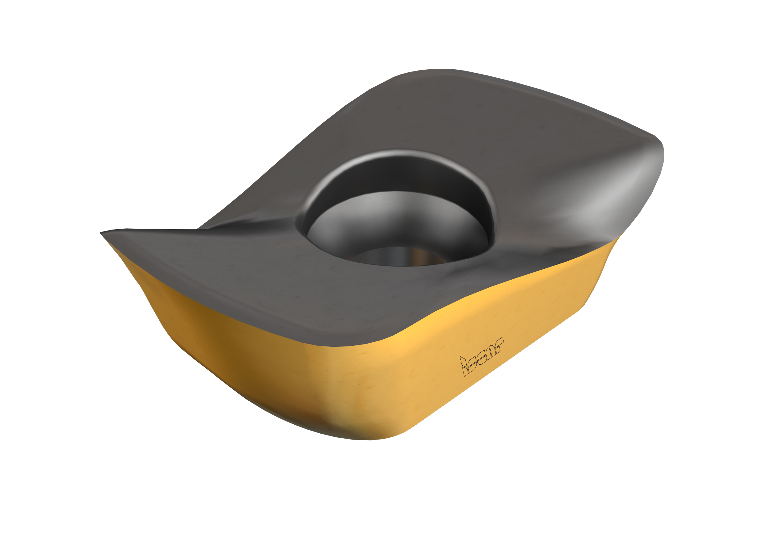 Para maximizar a eficiência dos carbonetos cimentados, uma nova rodada de desenvolvimento de pastilhas foi iniciada. A adaptação bem-sucedida da aresta de corte helicoidal para pastilhas triangulares abordou essa limitação. O conceito de pastilha triangular não apenas fornece três arestas de corte, mas também oferece benefícios adicionais. Quando comparado com outras formas com comprimento de aresta de corte igual, a forma triangular fornece uma área central mais ampla. Isso permite um aumento no tamanho do furo central, permitindo o uso de um parafuso de fixação com uma rosca maior. Como resultado, a fixação da pastilha é fortalecida, contribuindo para a durabilidade geral do conjunto de ferramentas de fresagem. Além disso, a forma triangular melhora a capacidade de corte de rampa descendente.