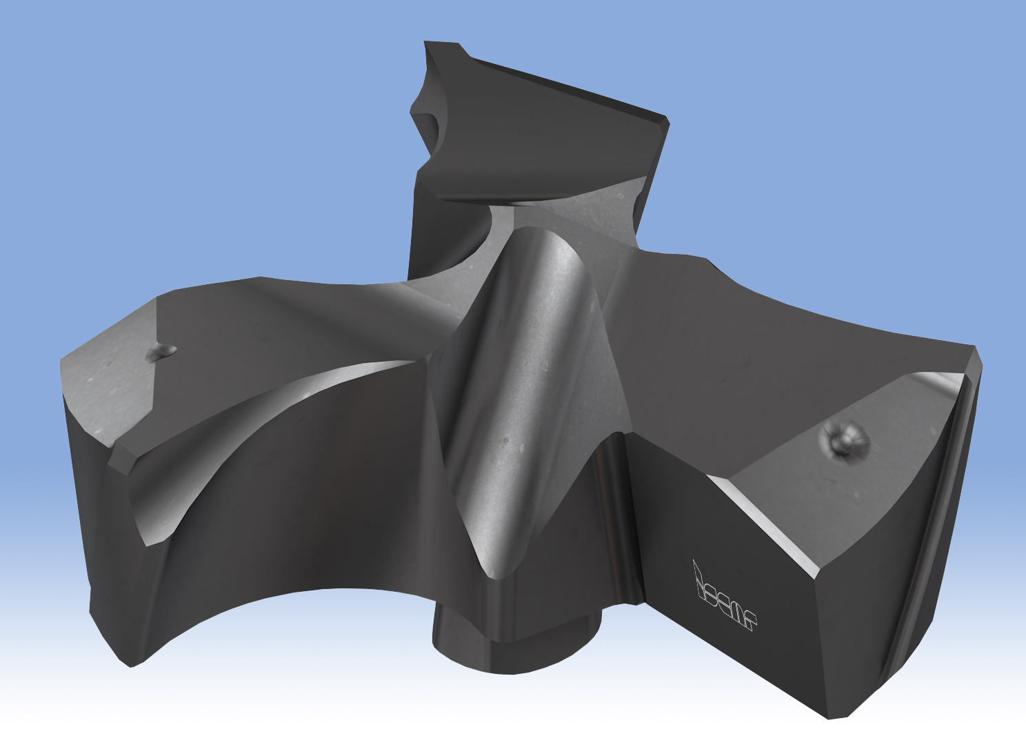 The new holder with three-flute heads allows a 10:1 drilling depth-to-diameter ratio (Fig. 2). The holder's main feature is a specific flute design that minimally affects the tool's structural strength. Another innovation is the expansion of the LOGIQ-3-CHAM family application to include counterboring. The specially designed three-flute heads Fig. 3) are mounted on existing tools and transform them into highly efficient counterbores. The unique design features of the heads, including a corner chamfer for rapid chipping, specialized deflectors for improved chip formation, and a unique margin for enhanced support and guidance, significantly boost performance when machining materials like sticky steel, stainless steel, and high-temperature superalloys (HTSA). This design facilitates a broad spectrum of counterboring operations, ensuring high-quality holes, even when machining cross-holes with inclined surfaces.